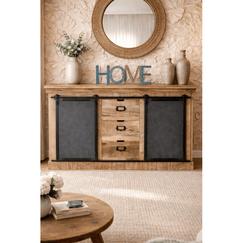 Le buffet soho 2 portes coulissantes métal 3 tiroirs n'est pas un simple meuble de rangement.