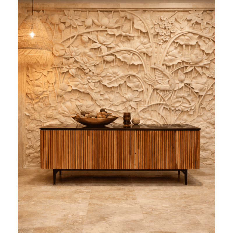 Meuble TV en Acacia, Métal & Marbre noir