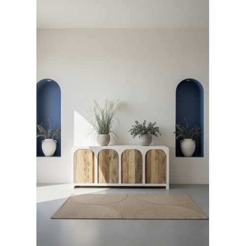 Ses lignes arrondies, inspirées de l'architecture des Cyclades adoucissent l'espace. Derrière ses quatre portes, le rangement est généreux et discret, idéal pour préserver une sensation d'ordre et de légèreté visuelle. Dans un salon, une salle à manger ou une grande entrée, le buffet Mykonos devient plus qu'un meuble : c'est une invitation au voyage, une parenthèse méditerranéenne au quotidien. Pour ceux qui aiment les intérieurs lumineux, naturels et les meubles qui ont une âme bohème chic.